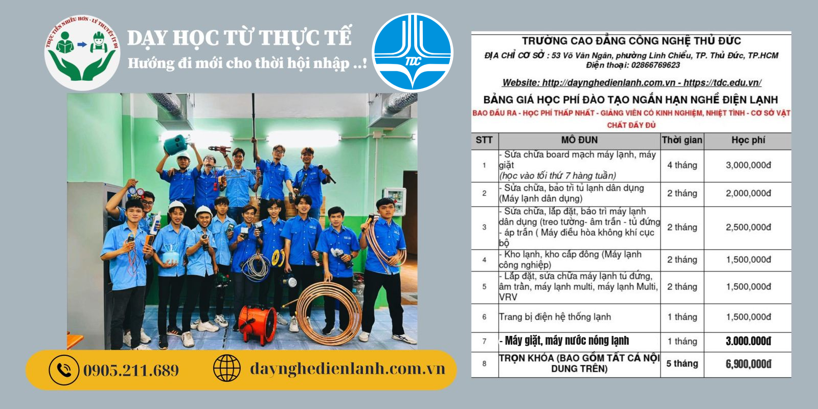 - Miễn phí máy móc học nghề sửa chữa điện lạnh.